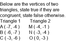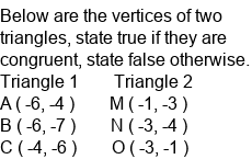 Calculate if two triangles on a coordinate plane are congruent.