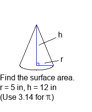 Surface area of a cone (3.14).