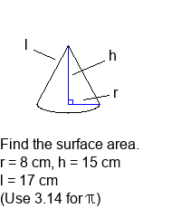 Surface area of a cone (3.14).
