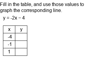 Graph by using an x-y table with given x-values (includes fractional slope).