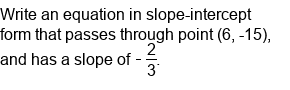 Write an equation in slope-intercept form that passes through a given point and slope.