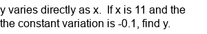 Direct Variation (find k).
