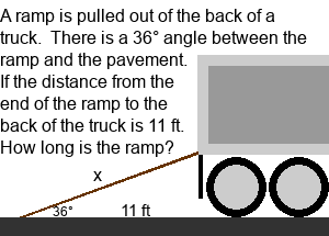 Solving for an angle of a right triangle using cos, sin, or tan.