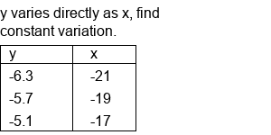 Direct Variation (given a table, find k).