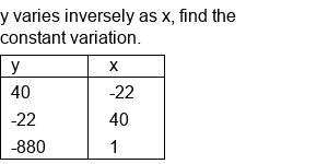 Inverse Variation (given a table, find k).