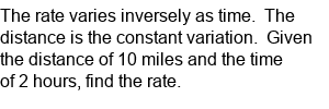 Inverse Variation word problem (rate and time).
