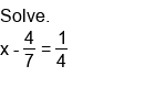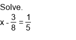Solving single-step equations by subtraction (fractions).