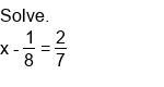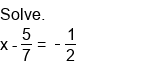 Solving single-step equations by subtraction (fractions).