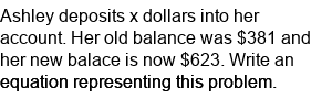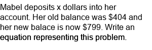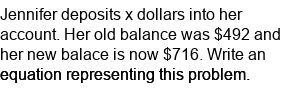 Write a single-step equation word problem. (deposit money)