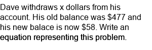 Write a single-step equation word problem. (withdraw money)