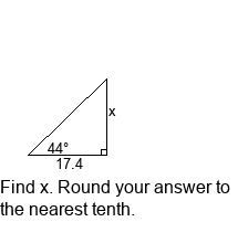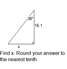 Solving for an angle of a right triangle using cos, sin, or tan.