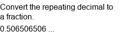 Repeating decimals to fractions.