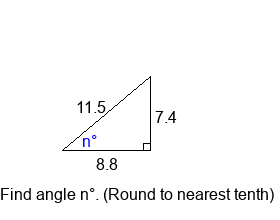 Solving for an angle of a right triangle using cos, sin, or tan.