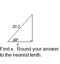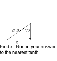 Solving for an angle of a right triangle using cos, sin, or tan.