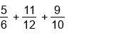 Adding 3 fractions with common denominators.