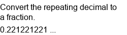 Repeating decimals to fractions.