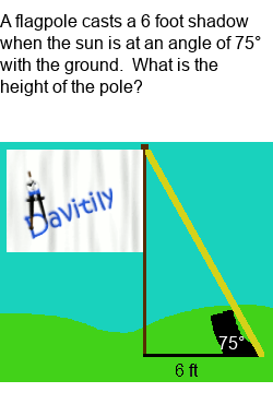Solving for an angle of a right triangle using cos, sin, or tan.